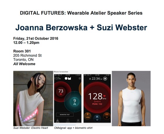 DIGITAL FUTURES: Wearable Atelier Speaker Series Joanna Berzowska + Suzi Webster Friday, October 21, 2016 – 12-1:20pm OCAD University, Room … More
